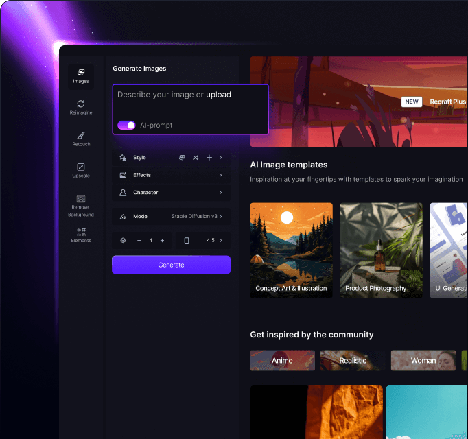 Create compelling ad visuals, social media graphics and branding assets that resonate with your audience.