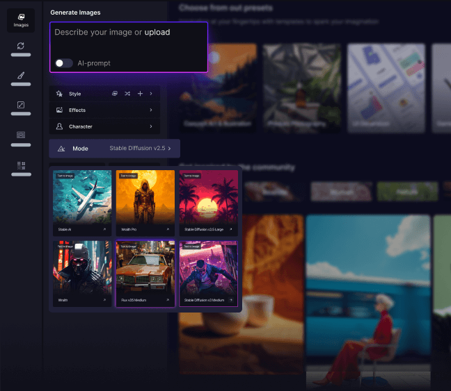 Tech professionals and software companies can generate UI concepts, promotional graphics and website assets in seconds.
